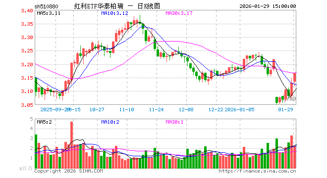 1月29日,红利ETF华泰柏瑞(510880)涨1.09%,成交额7.10亿元。当日份额减少5550.00万份,最新份额为62.70亿份,近20个交易日份额增加2.12亿份。最新资产净值计算值为198.65亿元。